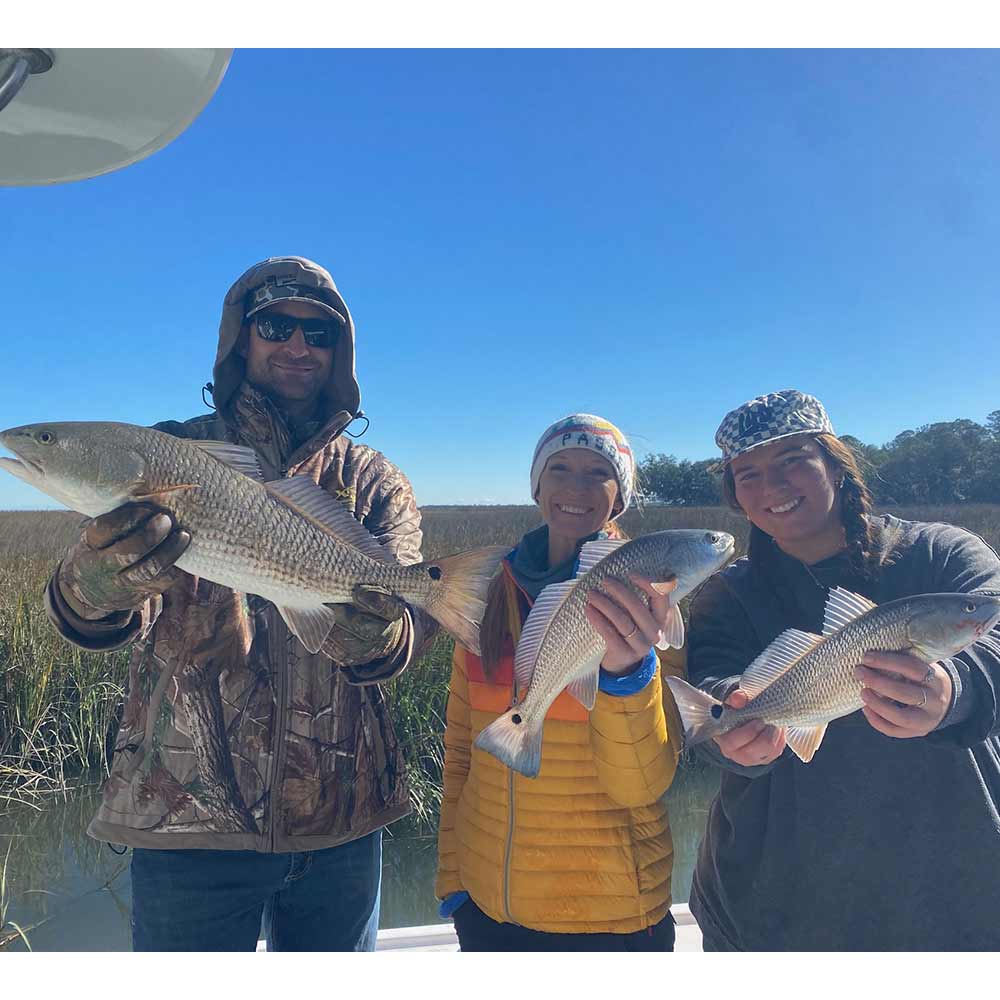 Morning surface water temperatures are around 76 degrees at the mouth of Charleston Harbor. Shrimp and baitfish are abundant.