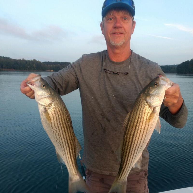 Early in the morning it’s still a very good bite for hybrid bass, and Guide Chip Hamilton (864-304-9011) reports