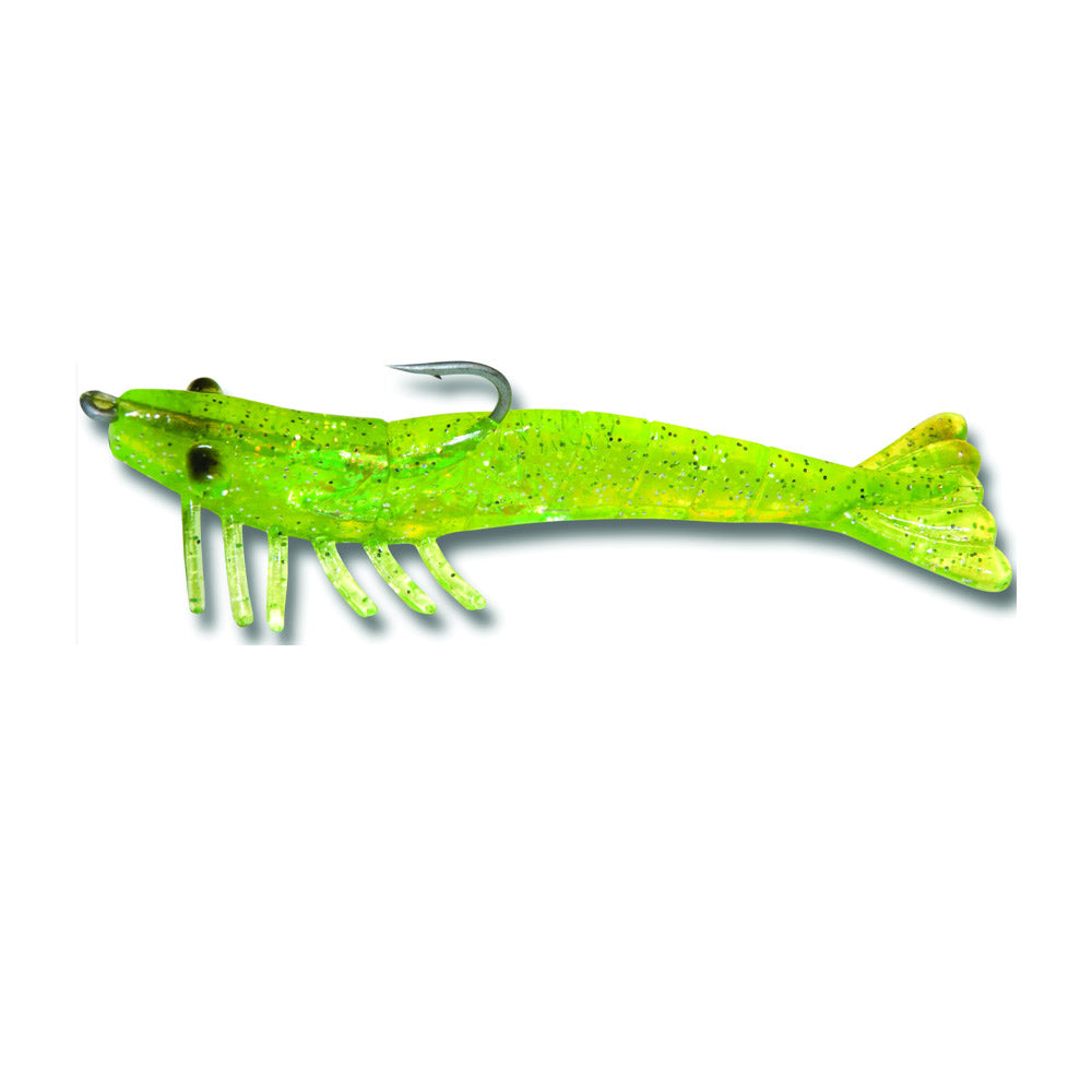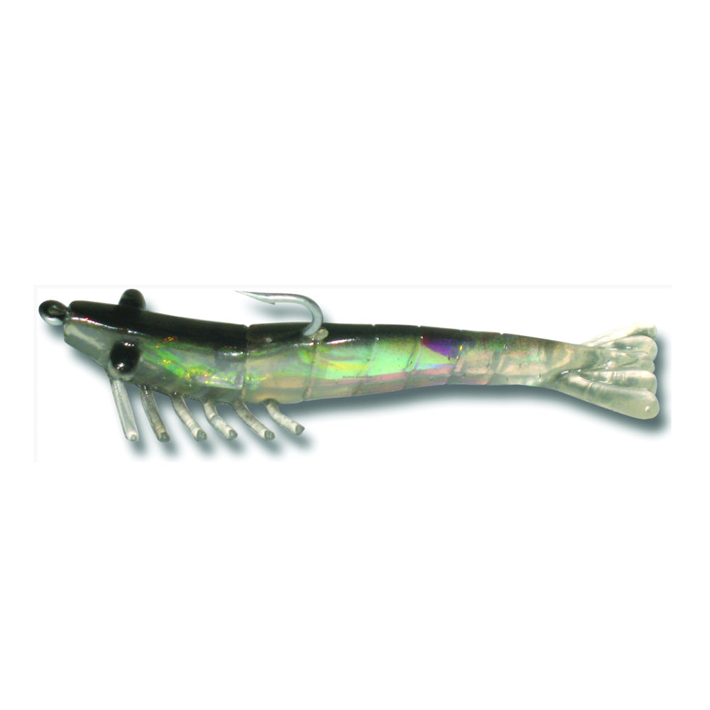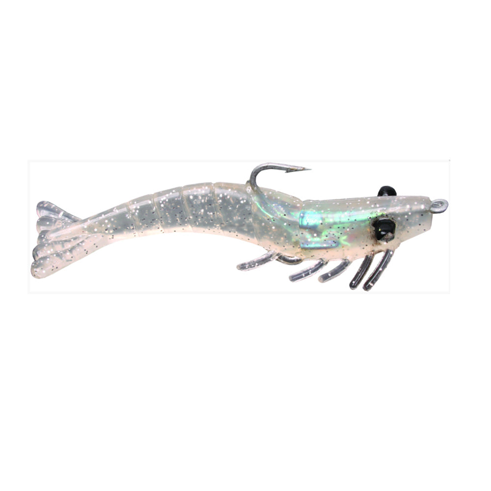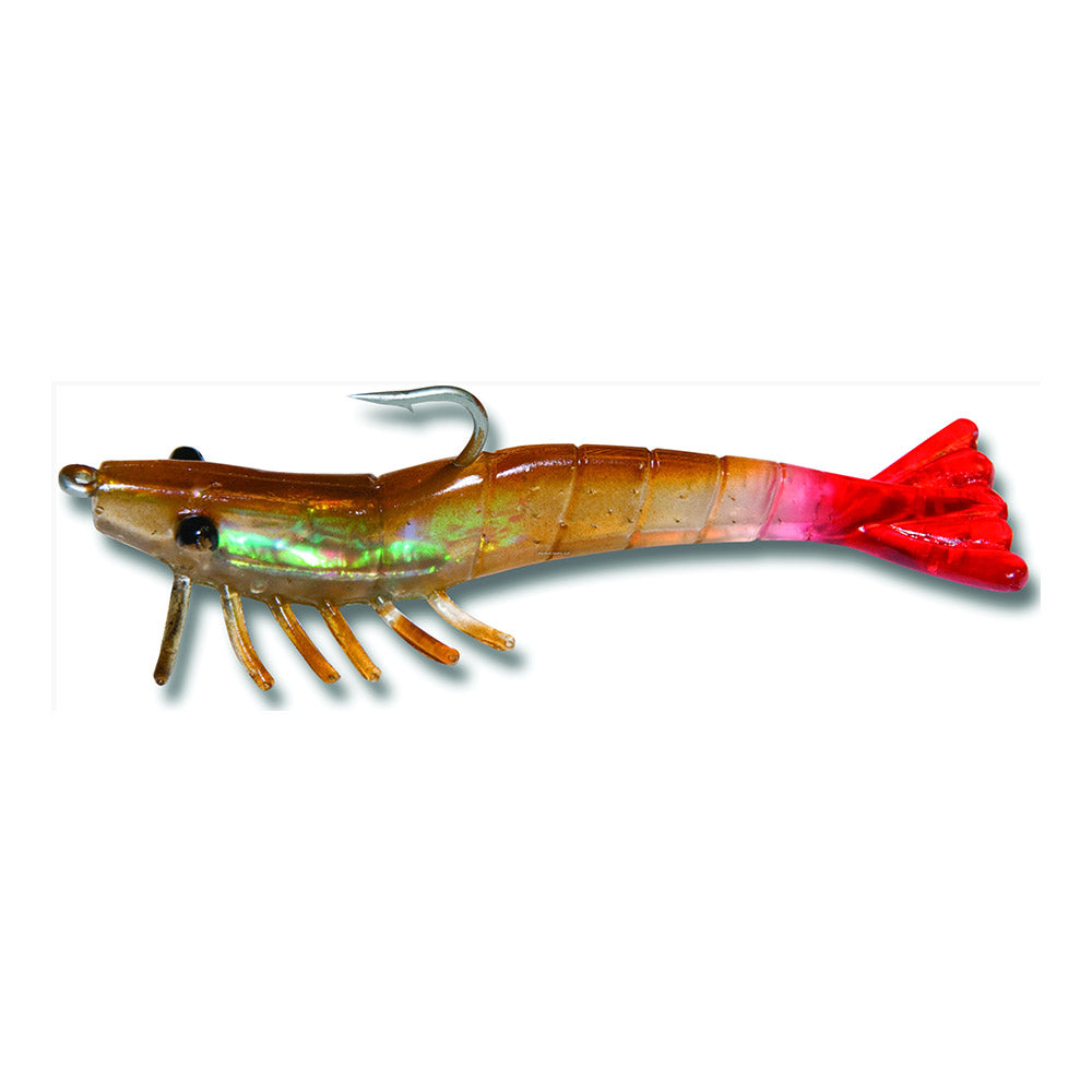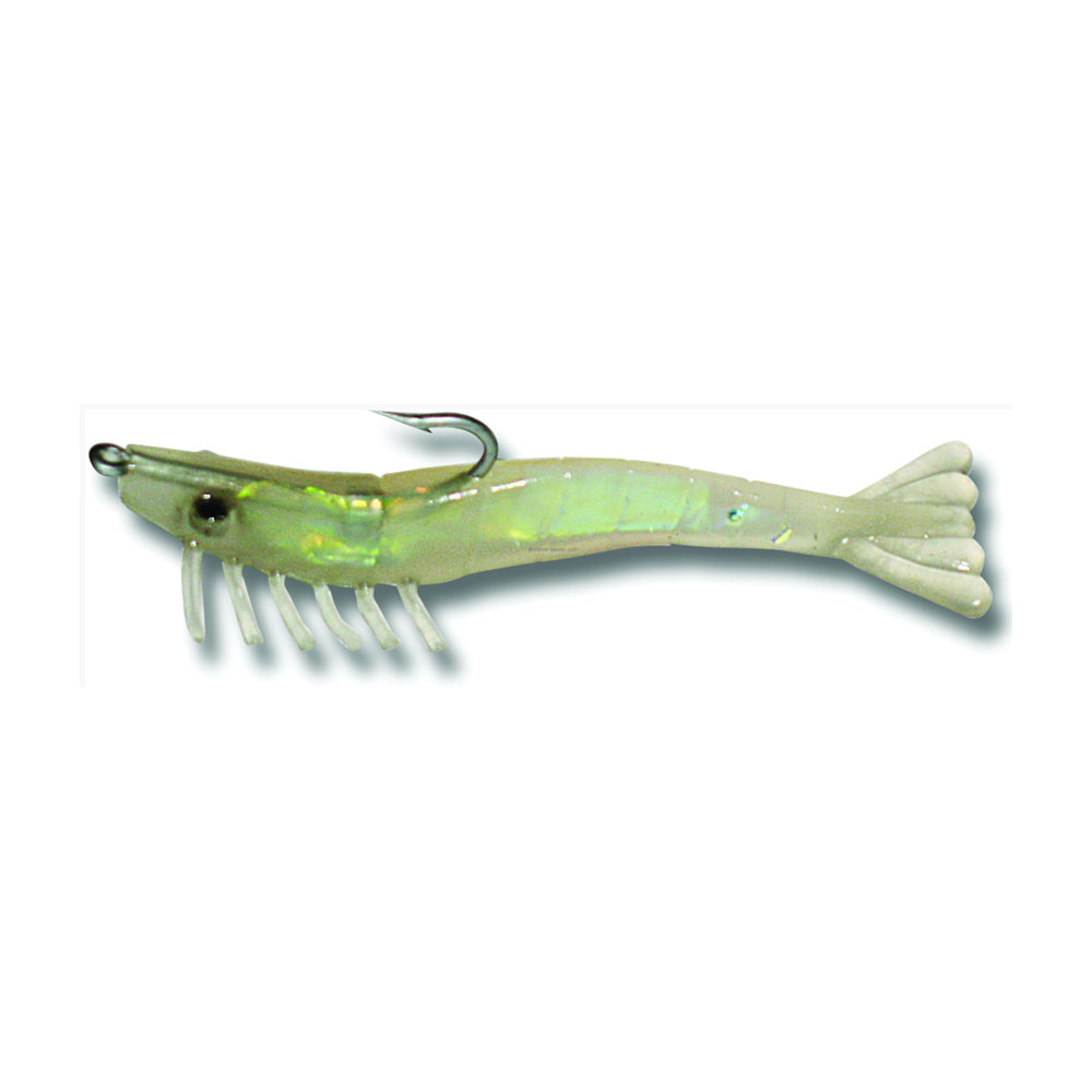 The Billy Bay Halo Grass Shrimp are a deadly, pre-rigged soft plastic. These quarter ounce shrimp lures feature durable construction and vibrant colors to drive fish nuts. Betts/Billy Bay designs these shrimp for use in slack current and shallow water. The soft bodies shine brightly and reflect light, to catch the eye of would be predators. With the lighter weight, these lures sink slowly and maintain a balanced, horizontal position as they fall. Each shrimp in the three count pack comes with a hook and is ready to tie on and cast. Great for targeting Sea Trout, Redfish, Flounder, and more.